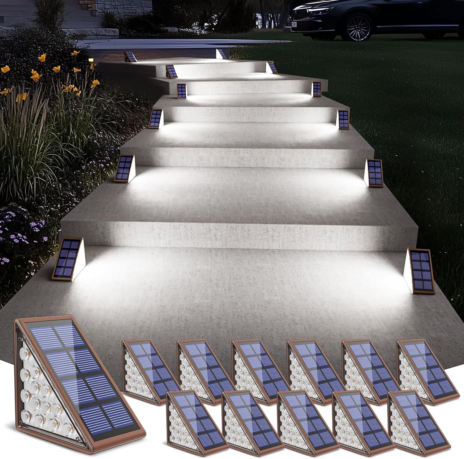 | Other Special Features of the Product | 3000K Warm Light, Auto on off, Triangular Solar Step Lights, Waterproof |
