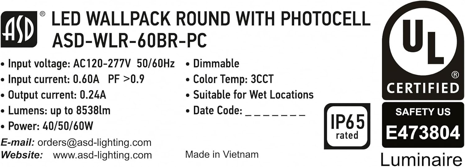 | Other Special Features of the Product | 6kV Surge Protection, Anti-glare PC Lens with Even Light Distribution, Color and Power Selectable, Die-cast Aluminum Housing with Excellent Heat Dissipation, Dusk to Dawn Photocell |